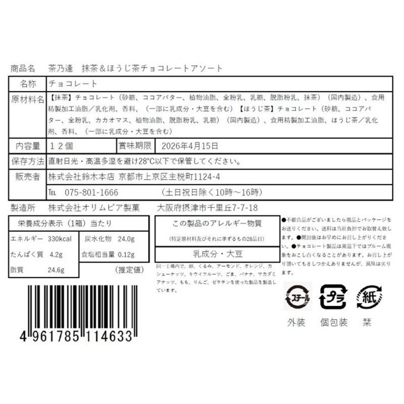 お茶を味わう京都発信のチョコレート。抹茶とほうじ茶のチョコレートアソート。