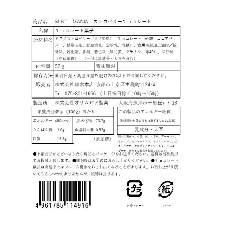 甘酸っぱい苺をミントチョコで包み込みました。