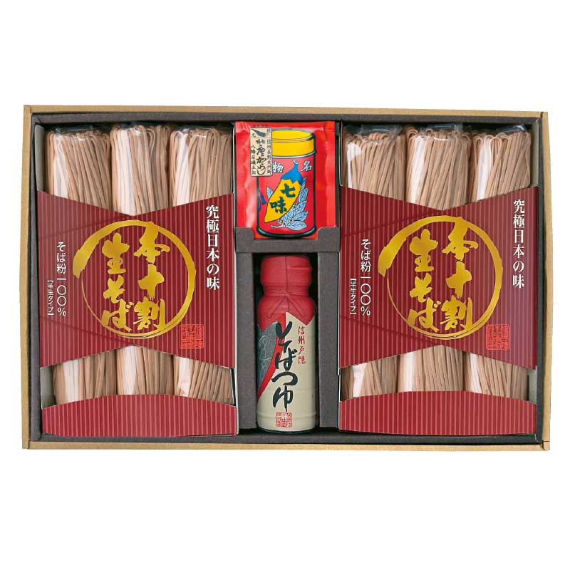 本十割生そば110g×6、そばつゆ100ml、八幡屋七味唐辛子8g
