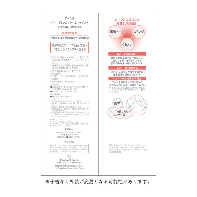 敏感な肌をアベンヌ温泉水*で洗う、うるおいつづくエアリー泡洗浄。