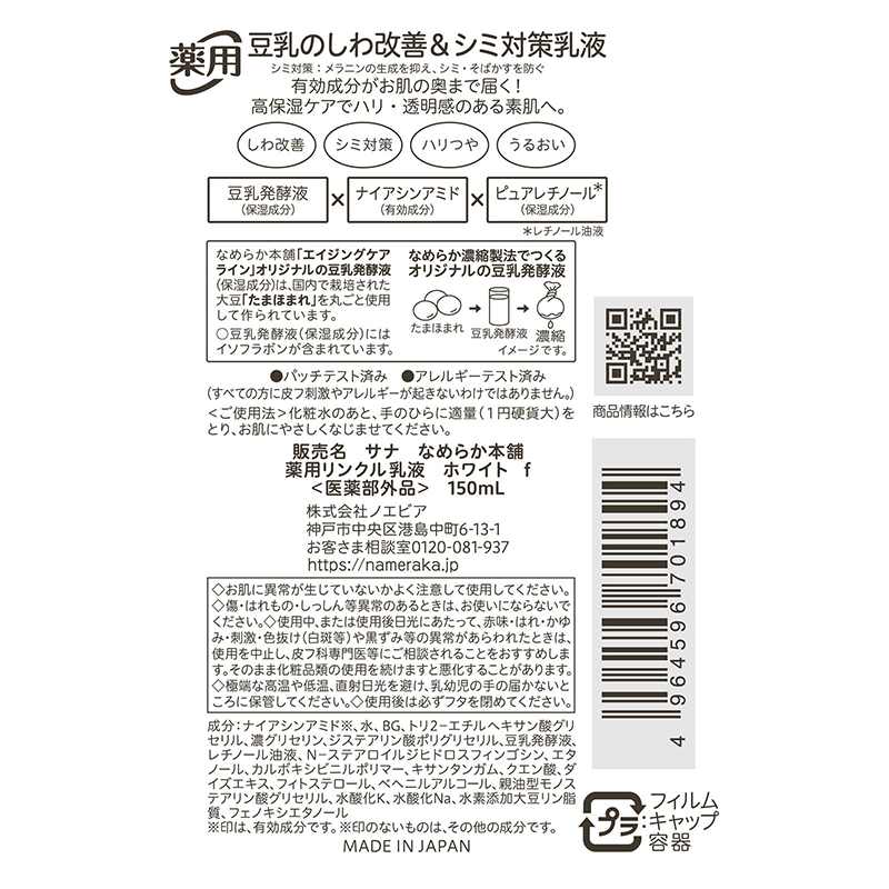 豆乳イソフラボン含有の薬用エイジングケア乳液