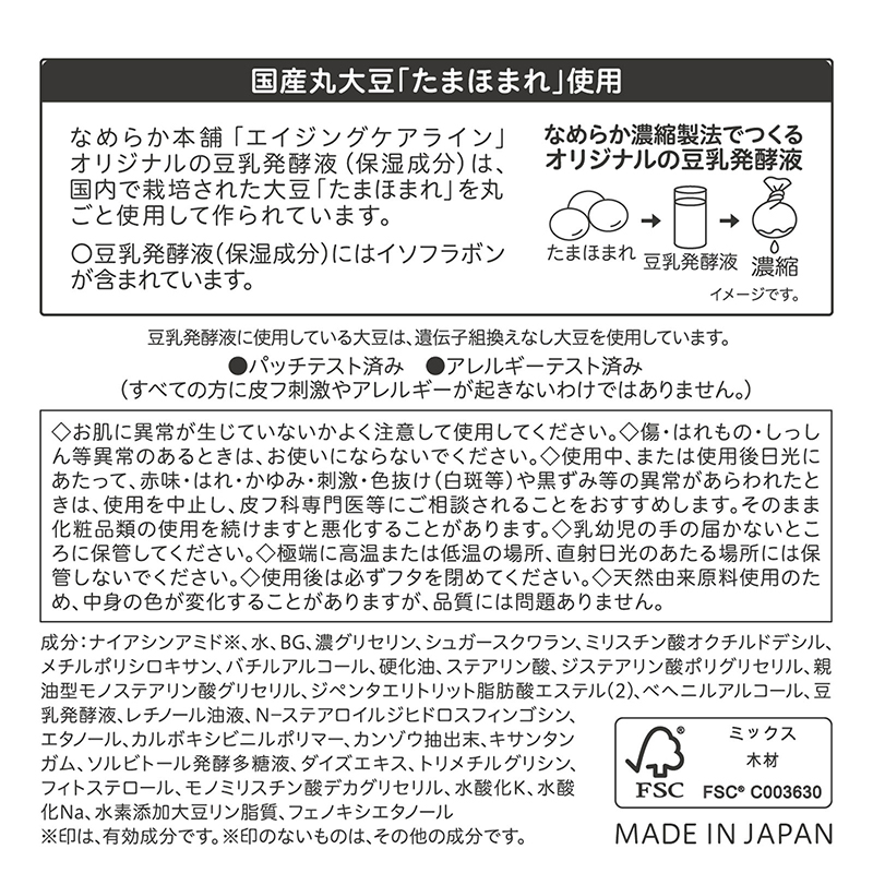なめらか本舗「エイジングケアライン」オリジナルの豆乳発酵液「保湿成分」は、国内で栽培された大豆「たまほまれ」を丸ごと使用