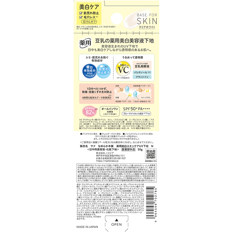 豆乳発酵液「保湿成分」 豆乳イソフラボン含有の薬用純白スキンケアUV下地