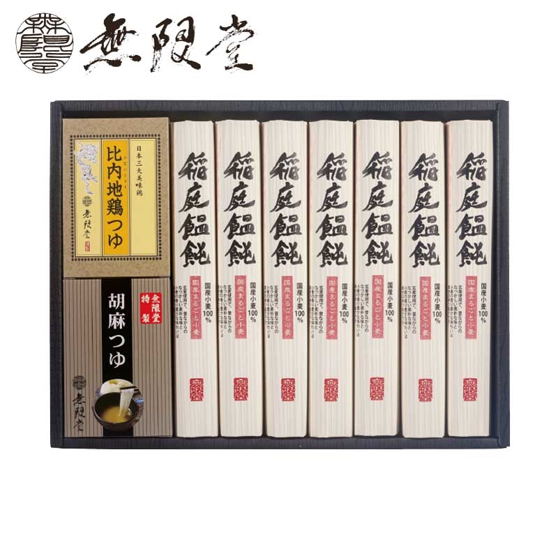 国産小麦稲庭うどん80g×7比内地鶏つゆ30ml×4胡麻つゆ30g×3