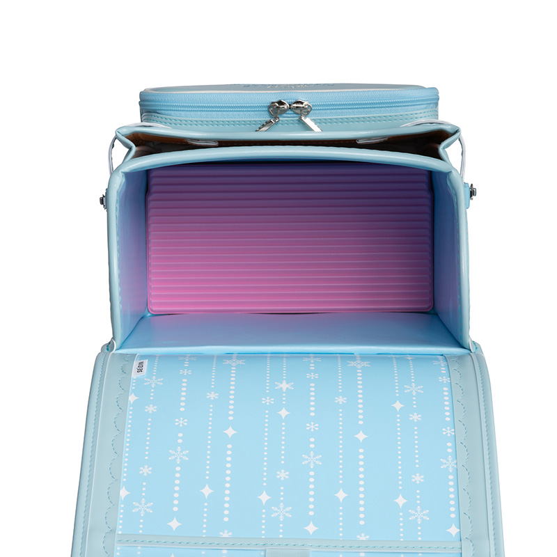 背あて部分は低反発と高反発素材の2層構造で背中とランドセルが広く接地して重さを分散。背負いやすさをサポートします。