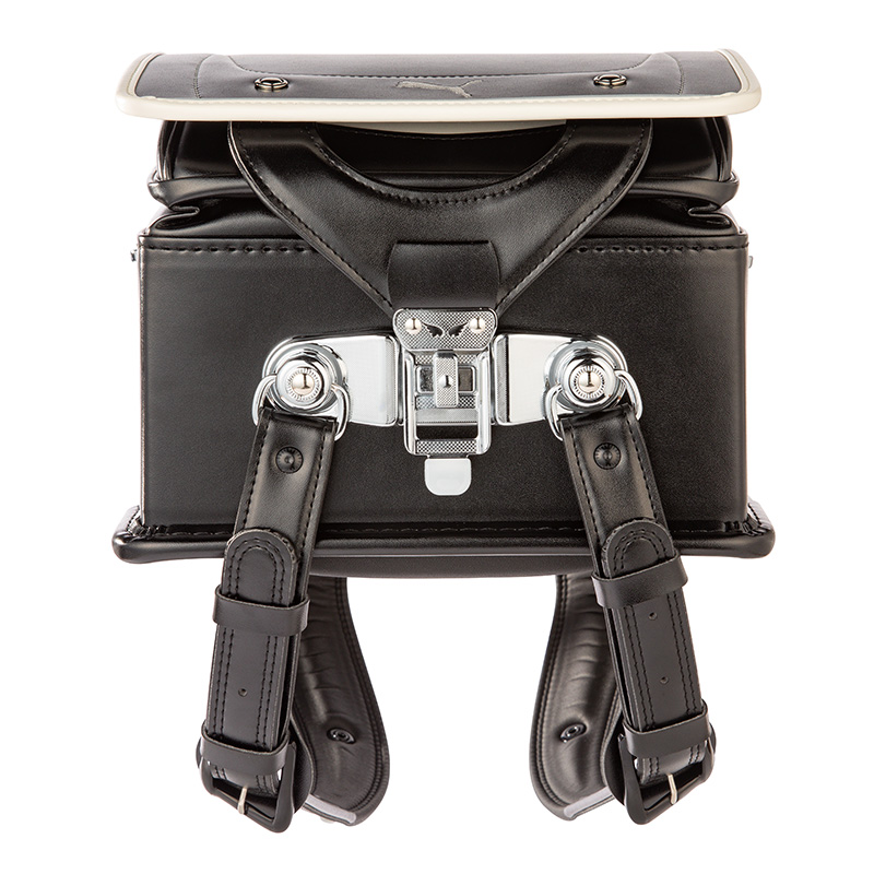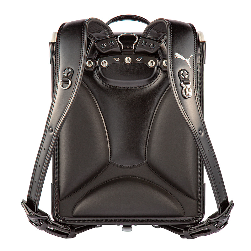 1-7.「ブレスレザー」・・・背あてと肩ベルト、下ベルト裏に吸湿と放湿を繰り返す合成皮革「ブレスレザー」を採用。