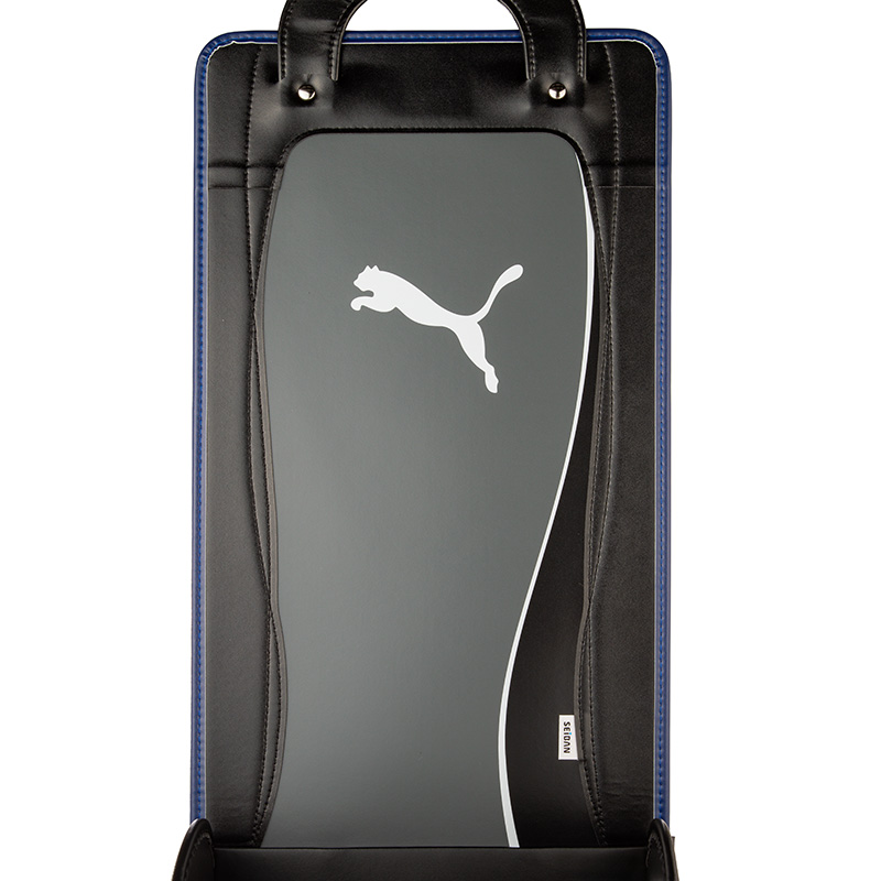 1-7.「ブレスレザー」・・・背あてと肩ベルト、下ベルト裏に吸湿と放湿を繰り返す合成皮革「ブレスレザー」を採用。