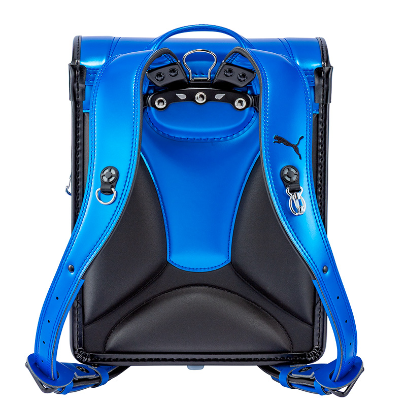 1-7.「ブレスレザー」・・・背あてと肩ベルト、下ベルト裏に吸湿と放湿を繰り返す合成皮革「ブレスレザー」を採用。