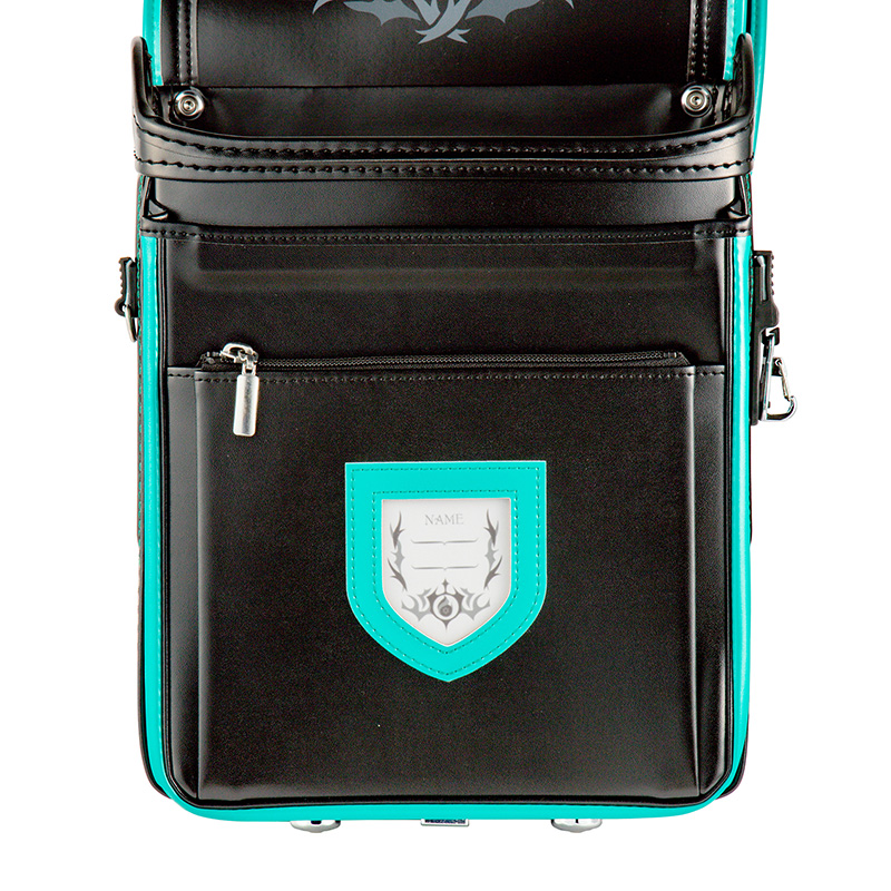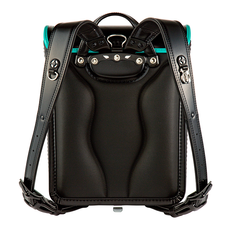 1-4.「ブレスレザー」・・・背あてと肩ベルト、下ベルト裏に吸湿と放湿を繰り返す合成皮革「ブレスレザー」を採用。