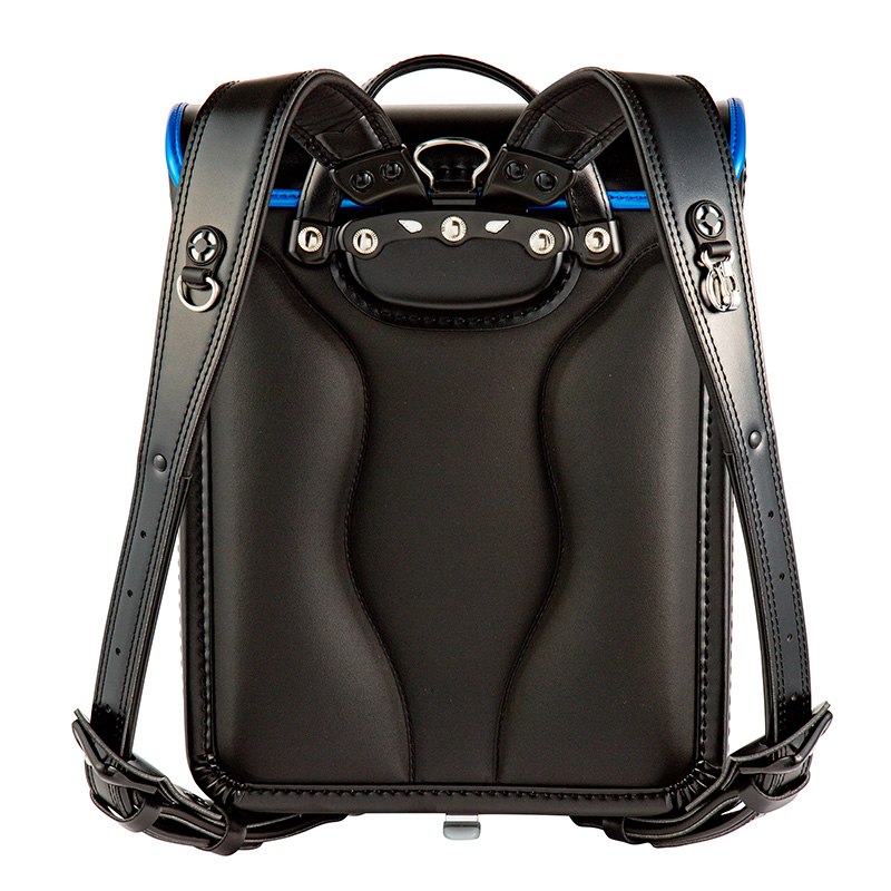 1-4.「ブレスレザー」・・・背あてと肩ベルト、下ベルト裏に吸湿と放湿を繰り返す合成皮革「ブレスレザー」を採用。