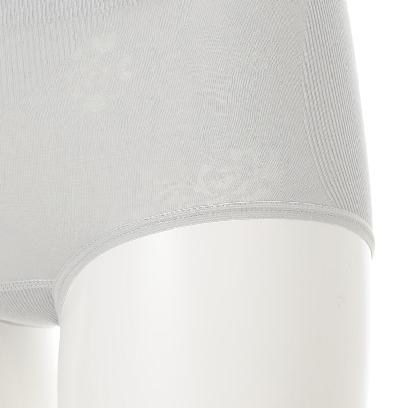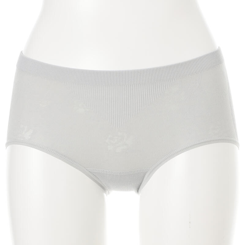 縦横に伸縮する成型編みの綿混ショーツ。