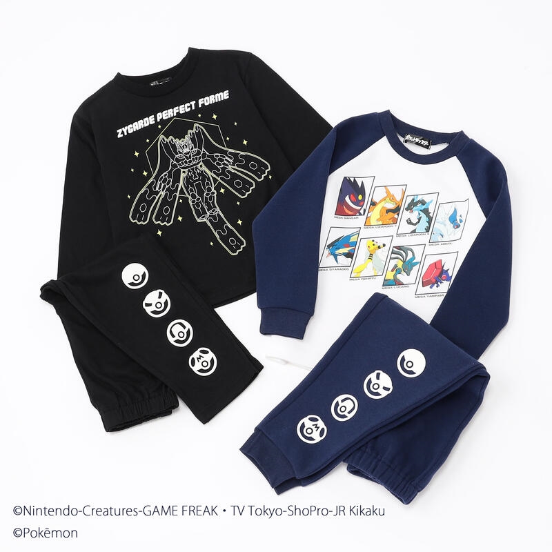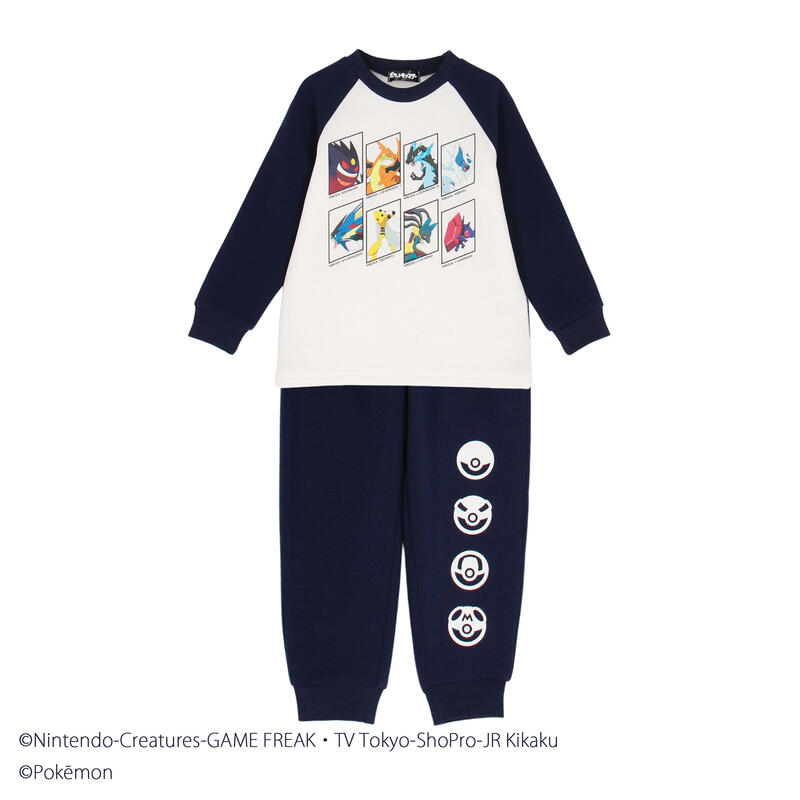 ポケモンでお馴染みのキャラクターたちがプリントされたシャギーと天竺素材のパジャマの2着セット。