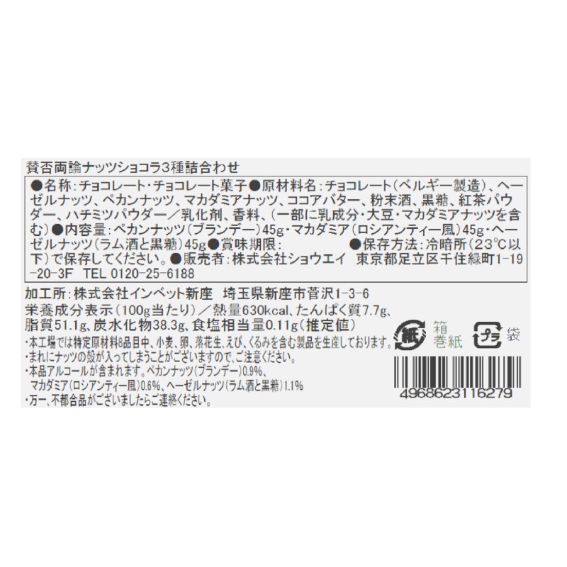 ペカンナッツ・ヘーゼルナッツ・マカダミアナッツに、笠原流味付けの3種詰合せ。