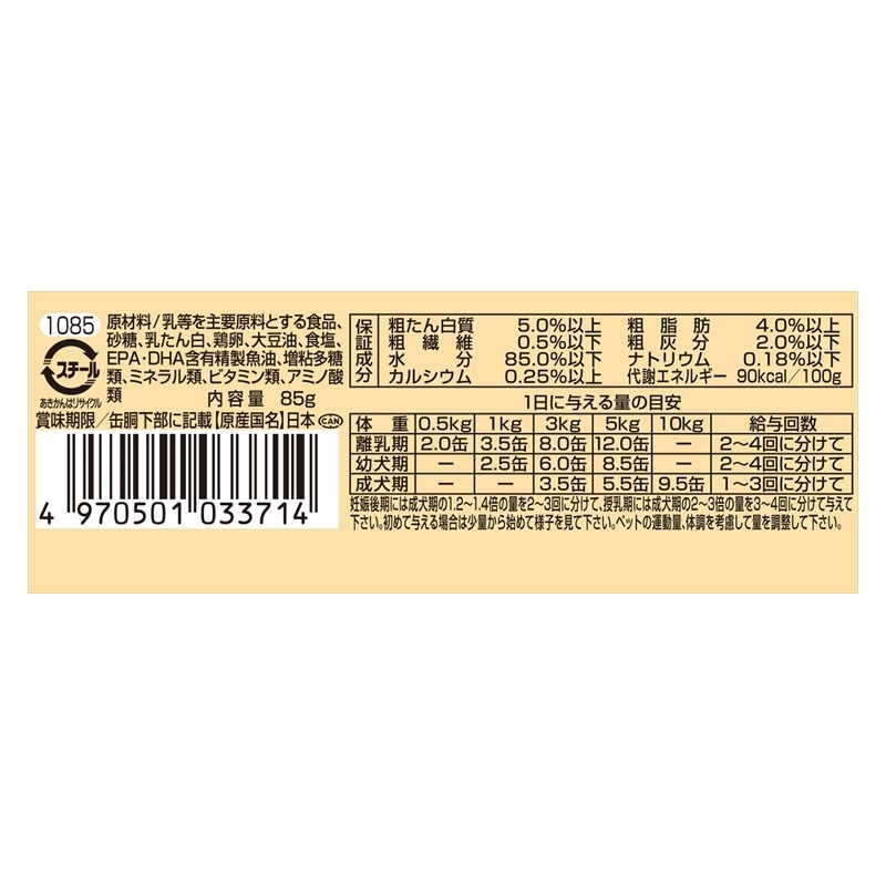 乳等を主要原料とする食品、砂糖、乳たん白、鶏卵、大豆油、食塩、EPA・DHA含有精製魚油、増粘多糖類、