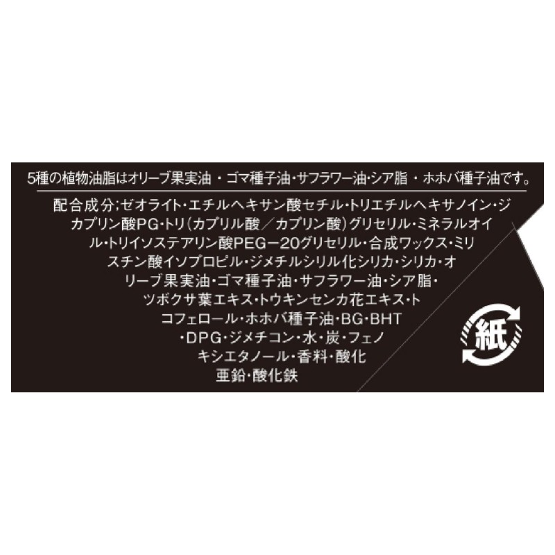 ホホバ種子油、BG、BHT、DPG、ジメチコン、水、炭、フェノキシエタノール、香料、酸化亜鉛、酸化鉄