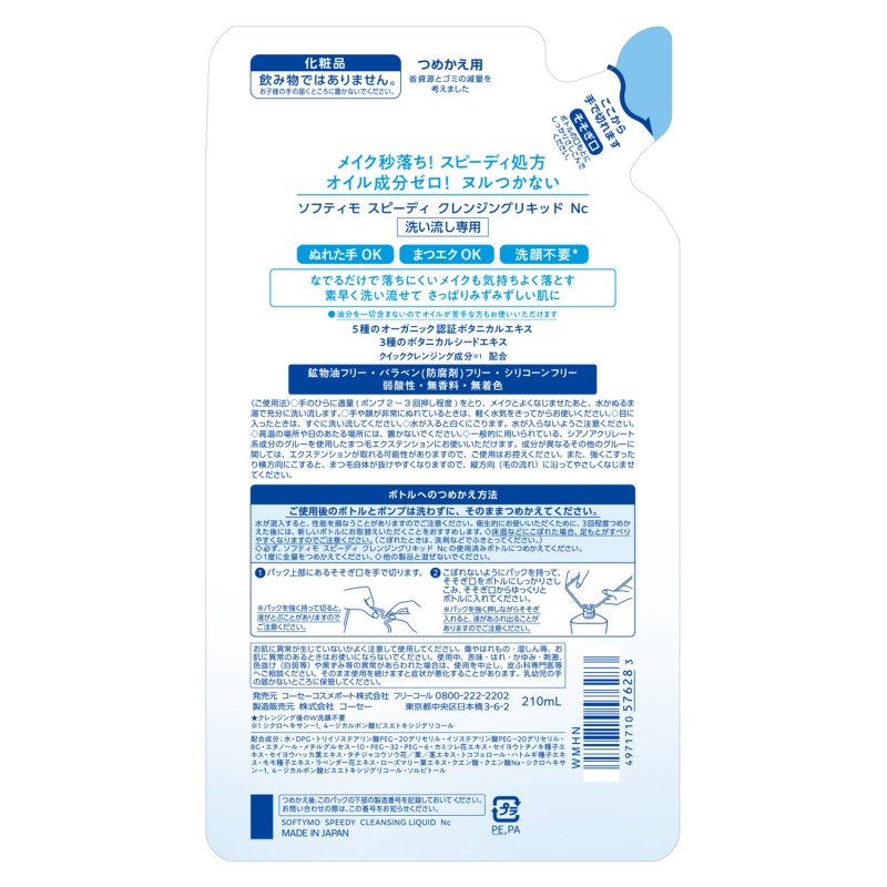 ●5種のオーガニック認証ボタニカルエキス(保湿)と3種のボタニカルシードエキス(保湿)を配合した、秒落ちスピーディリキッ