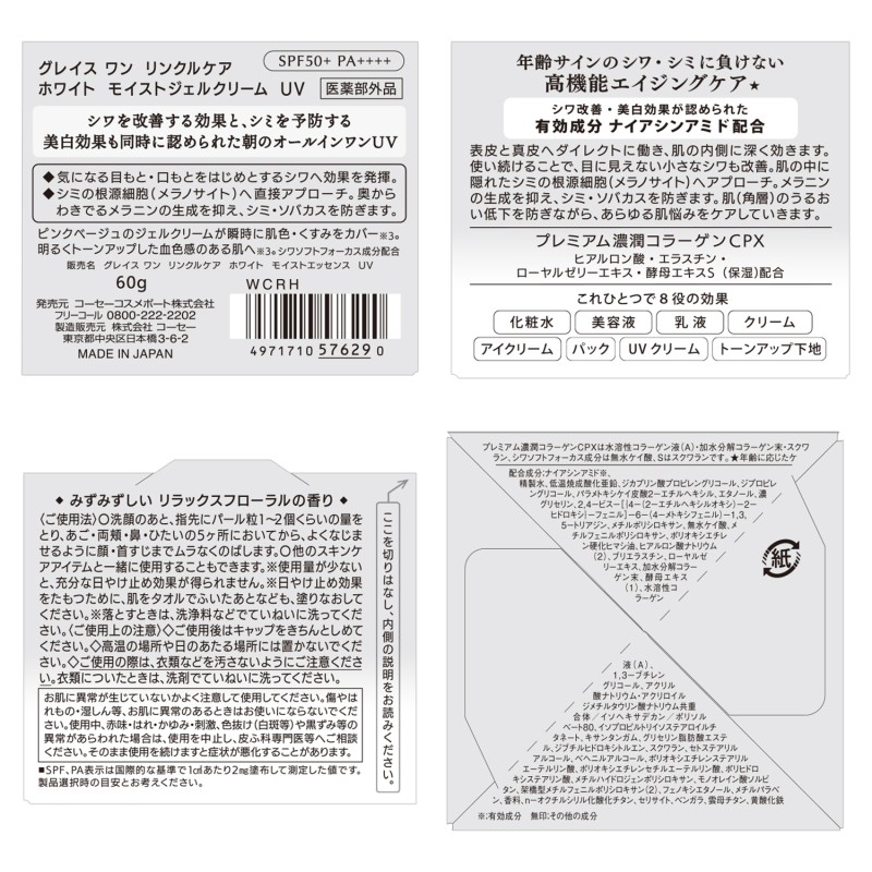 ●その他の成分…精製水、低温焼成酸化亜鉛、ジカプリン酸プロピレングリコール、ジプロピレングリコール、パラメトキシケイ皮酸