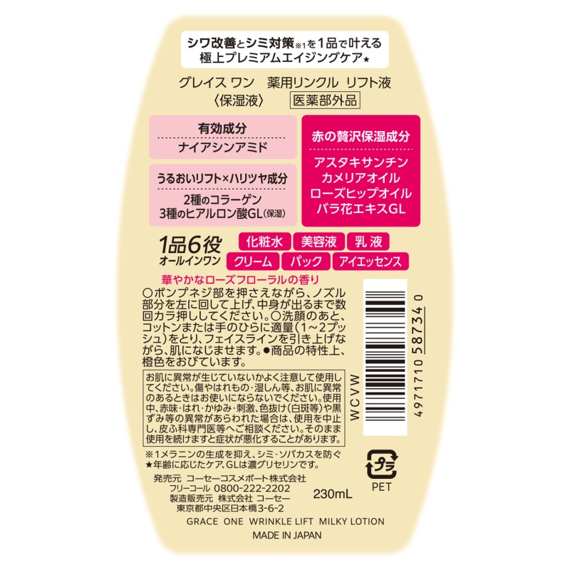 ●シワを改善しシミを予防する効果のある1品6役のオールインワンエッセンス。