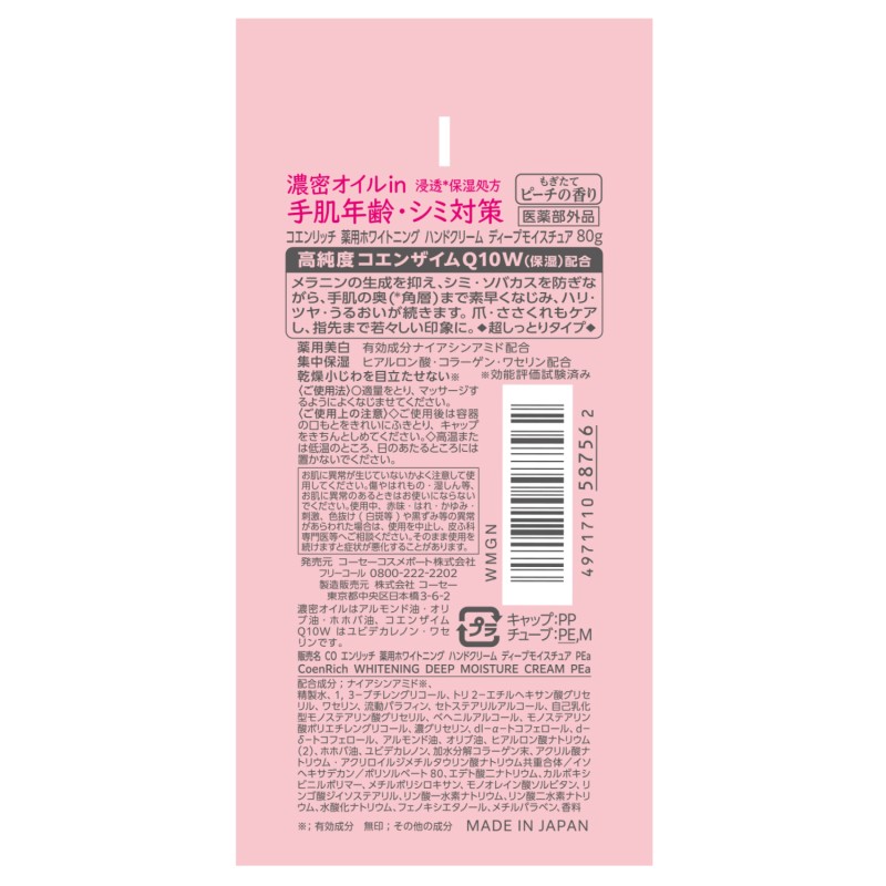 ●しっとりなめらかな感触のコエンザイムQ10配合ハンドクリーム。
