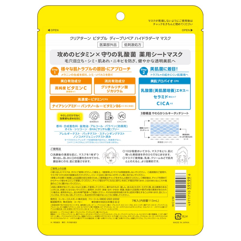 ●ビタミン×乳酸菌で、毛穴目立ち(※1)・シミ・ニキビを防ぐ、薬用シートマスク。