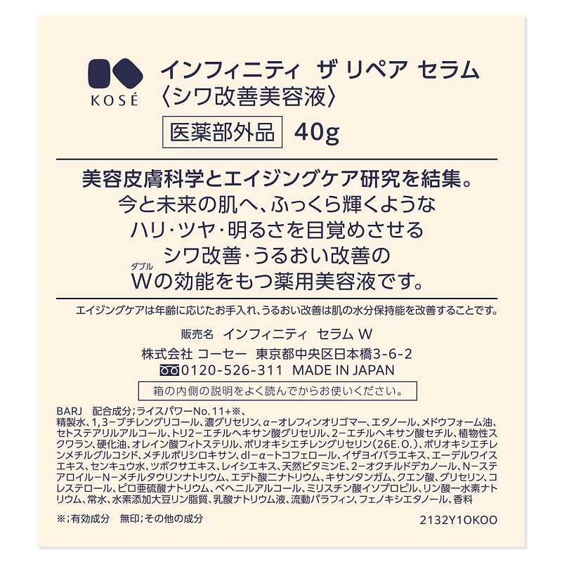 有効成分ライスパワーNo11+をコーセー史上最高濃度配合。「シワ改善」×「うるおい改善」を叶える美容液。