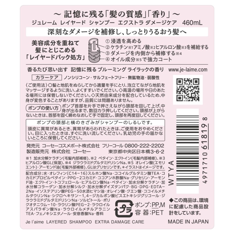 ●美容成分を重ねてとじこめるレイヤードパック処方で、記憶に残る「髪の質感」・「香り」を叶えるシャンプー。