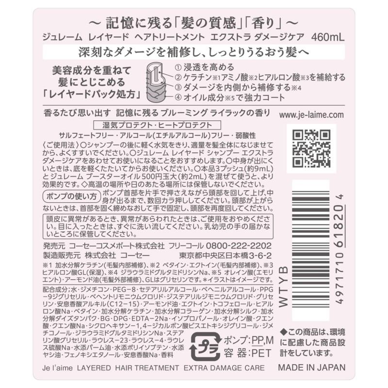 ●美容成分を重ねてとじこめるレイヤードパック処方で、記憶に残る「髪の質感」・「香り」を叶えるヘアトリートメント。