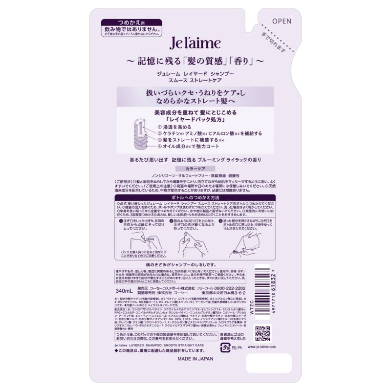 ●美容成分を重ねてとじこめるレイヤードパック処方で、記憶に残る「髪の質感」・「香り」を叶えるシャンプー。