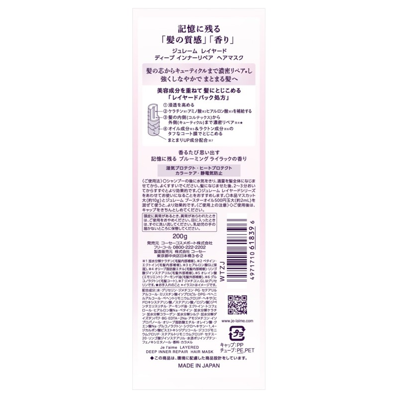 ●美容成分を重ねてとじこめるレイヤードパック処方で、記憶に残る「髪の質感」・「香り」を叶えるディープインナーリペアヘアマ