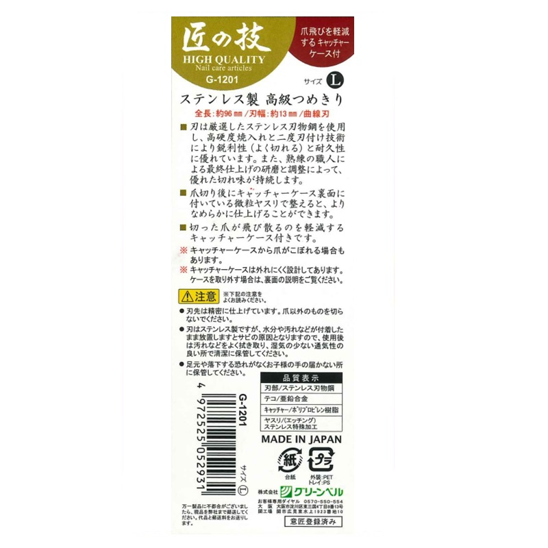 刃は厳選したステンレス刃物鋼を使用し、高硬度焼入れと二度刃付け技術により、鋭利性(よく切れる)と耐久性に優れています。