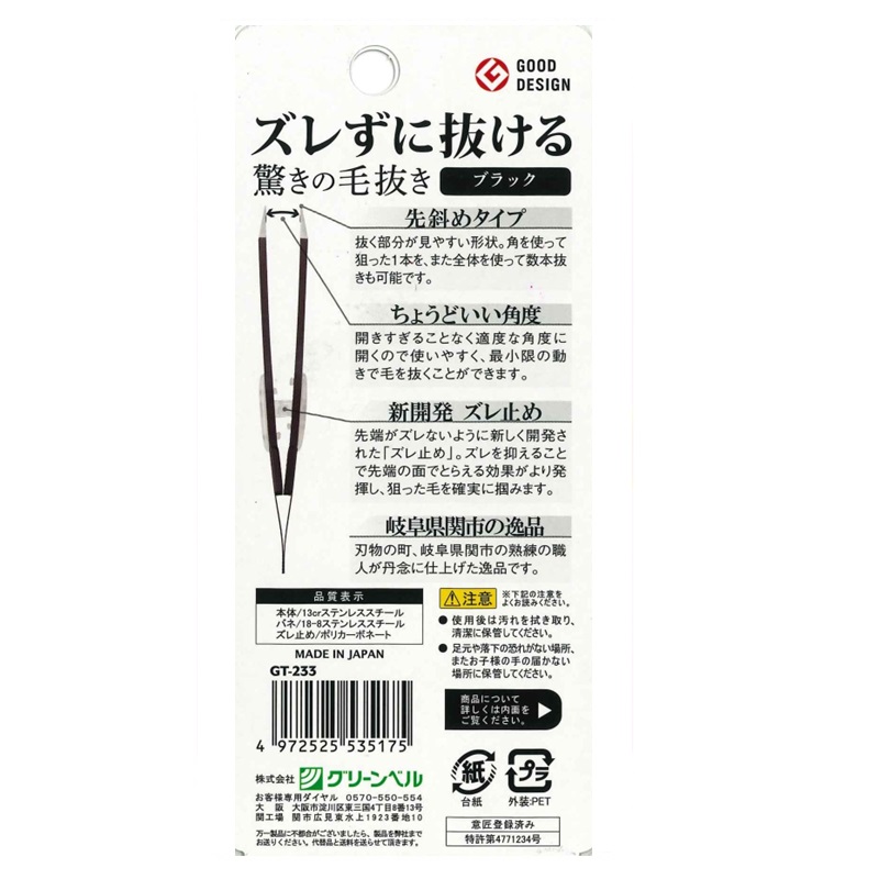 先端の横ズレを防ぎ狙った毛を確実に掴む。