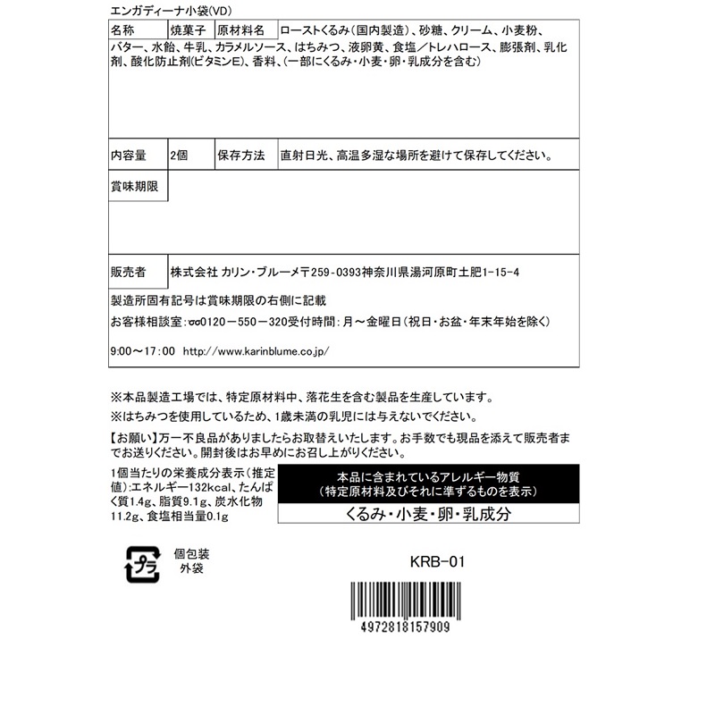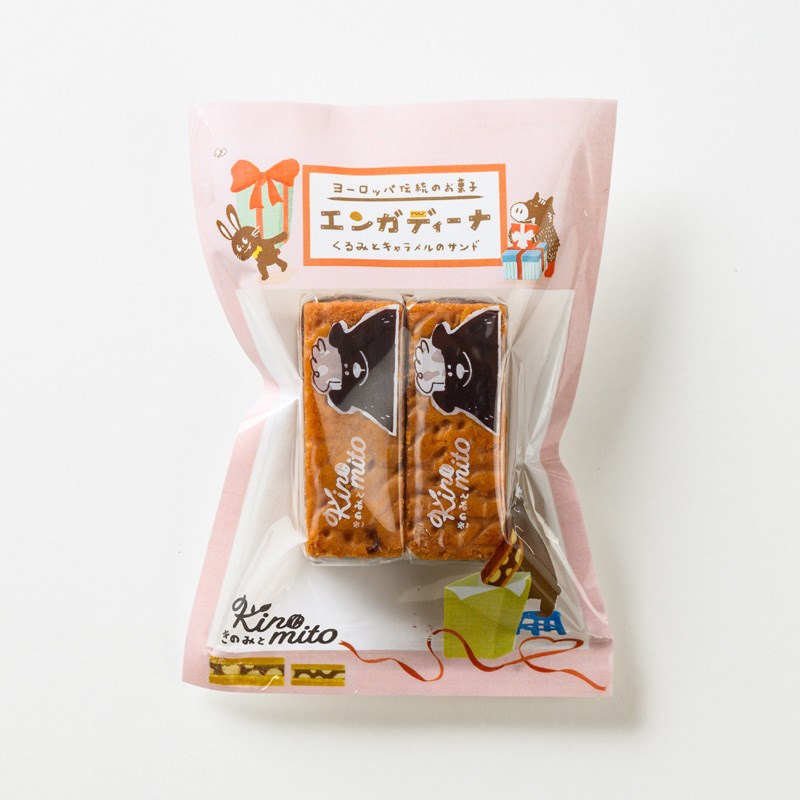 くるみとキャラメルをサンドしたヨーロッパ伝統のお菓子エンガディーナです。2個入
