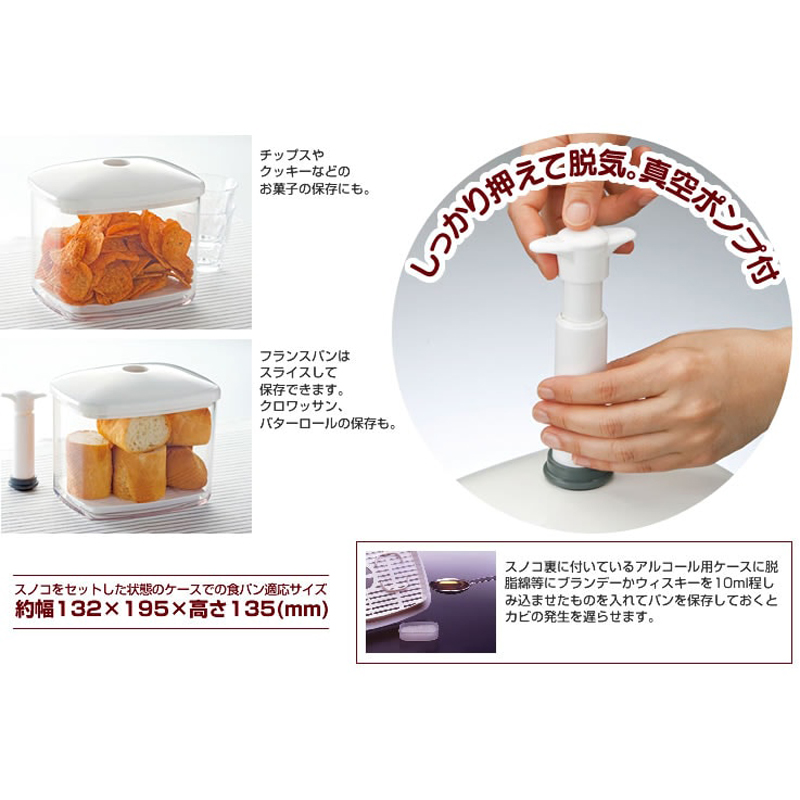 【スノコをセットした状態のケースでの食パン適応サイズ】約幅132mm×奥行195mm×高さ135mm