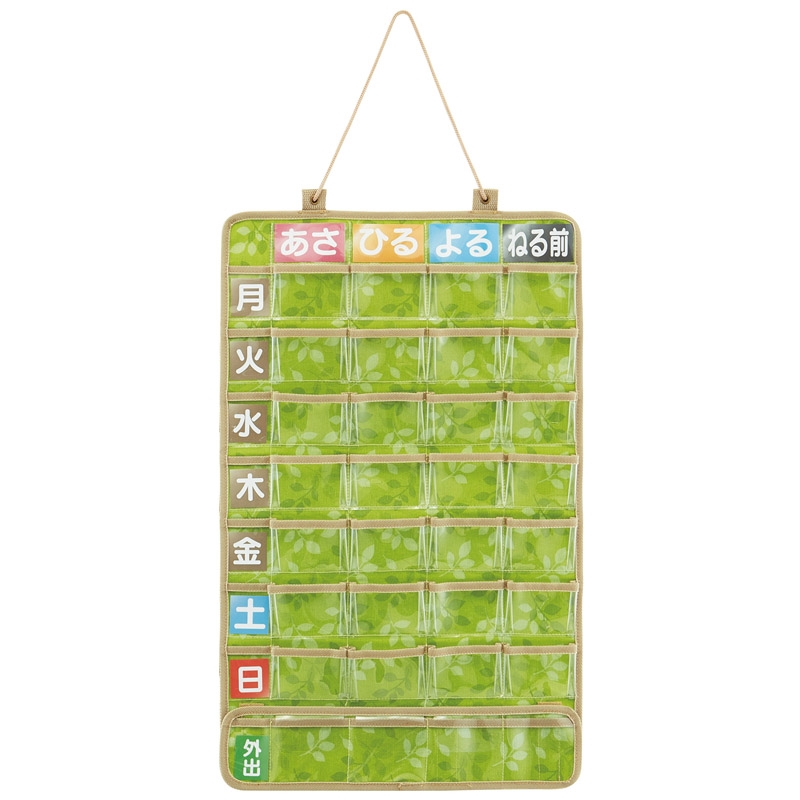 ・1日分(4回分)を取り外し、折りたたんで携帯できる外出用ポケット付き(最下段)。