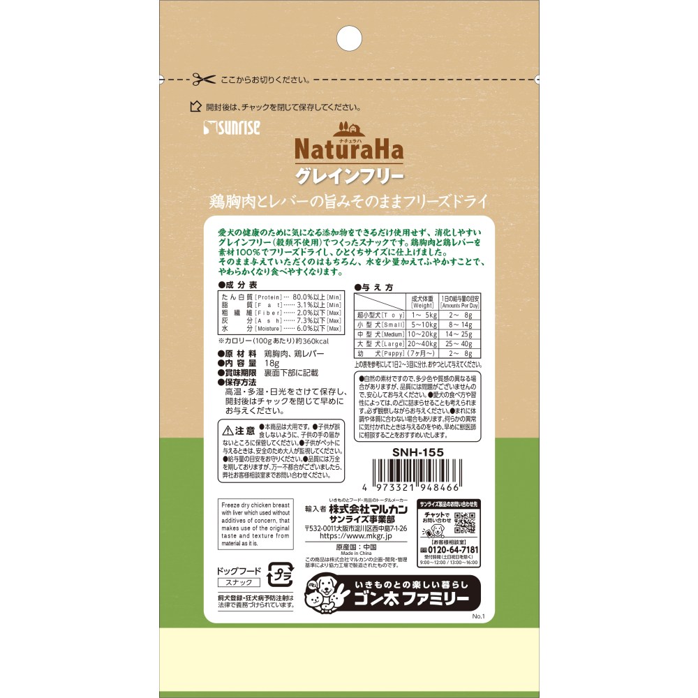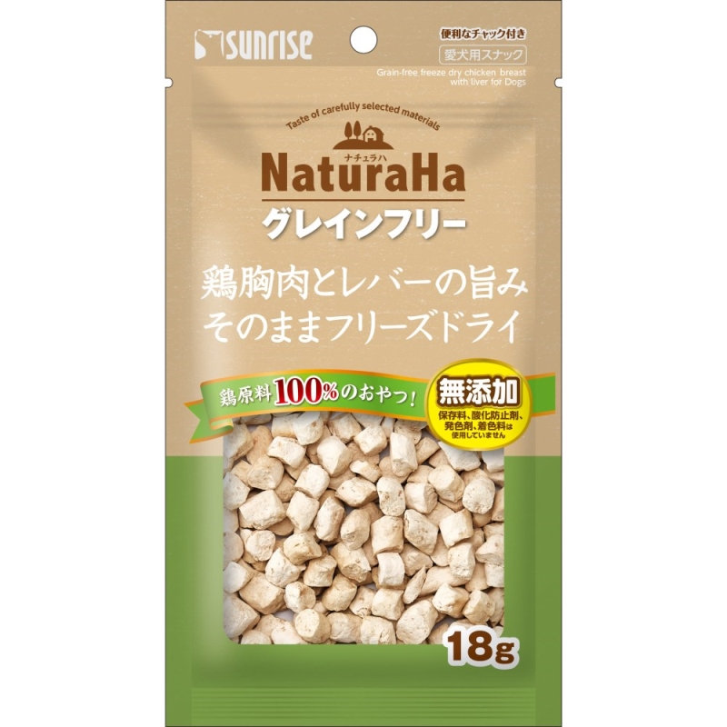 ・鶏胸肉と鶏レバーを素材100%でフリーズドライし、ひとくちサイズに仕上げたスナックです。