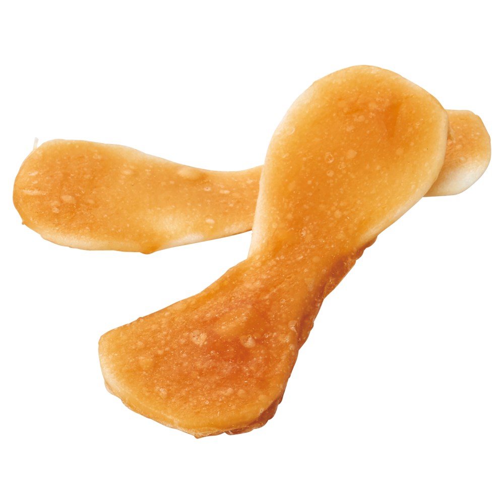 ・骨型の牛皮をペラペラの板状にし、ワンちゃんの大好きな鶏ササミを両面に塗り付けた牛皮ガムです。
