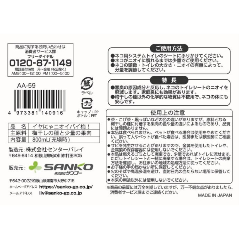 ・日本製 梅干しの種に驚きの消臭力!この種を使った猫砂です。