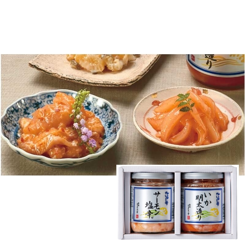 サーモン塩辛200g、いか明太造り200g