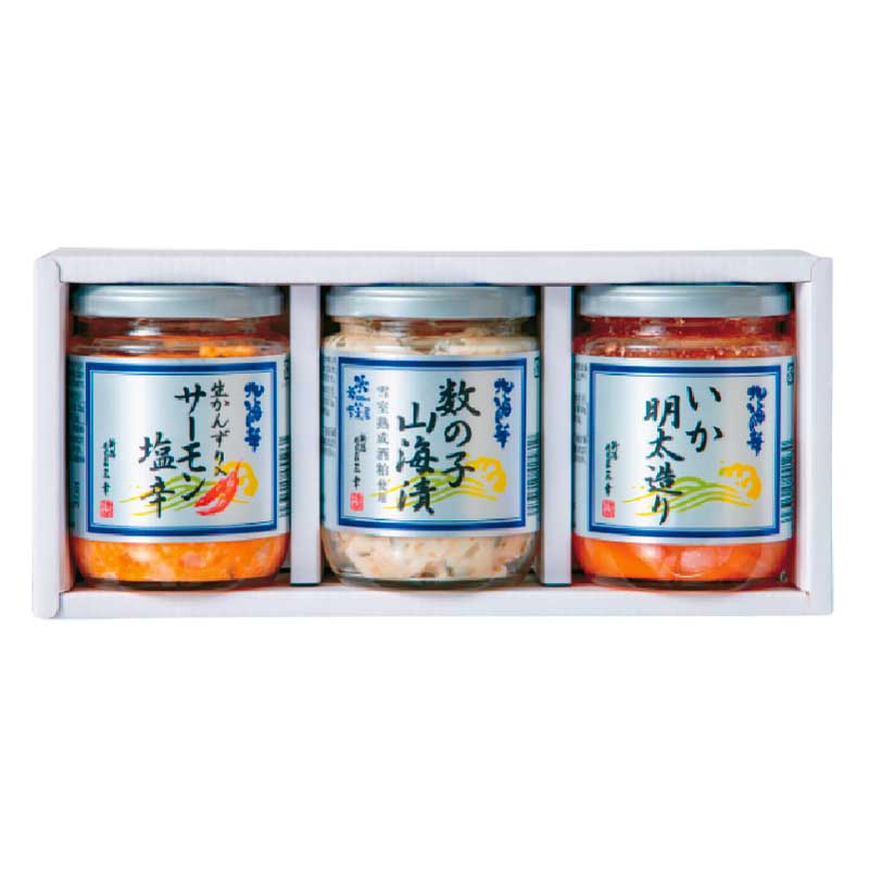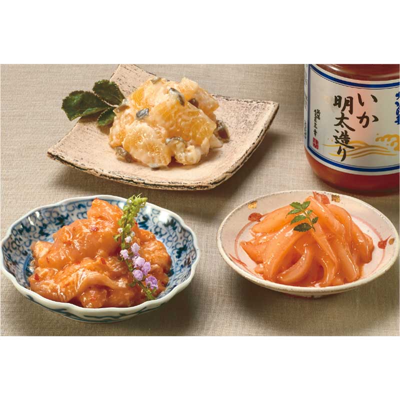 生かんずり入サーモン塩辛、いか明太造り各200g、数の子山海漬230g