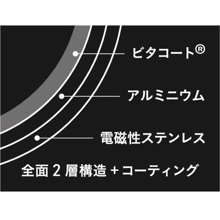 ステンレス、アルミの全面2層構造によって高い熱吸収性、熱伝導性、保温性が生まれます。