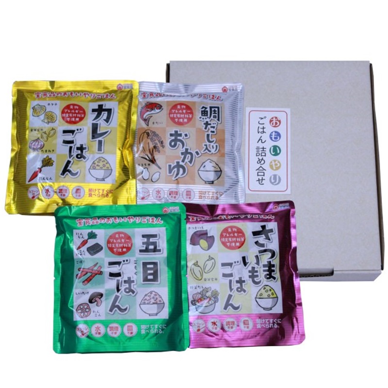 - 五目ごはん・カレーごはん・さつまいもごはん・鯛だし入りおかゆ 各260g×1