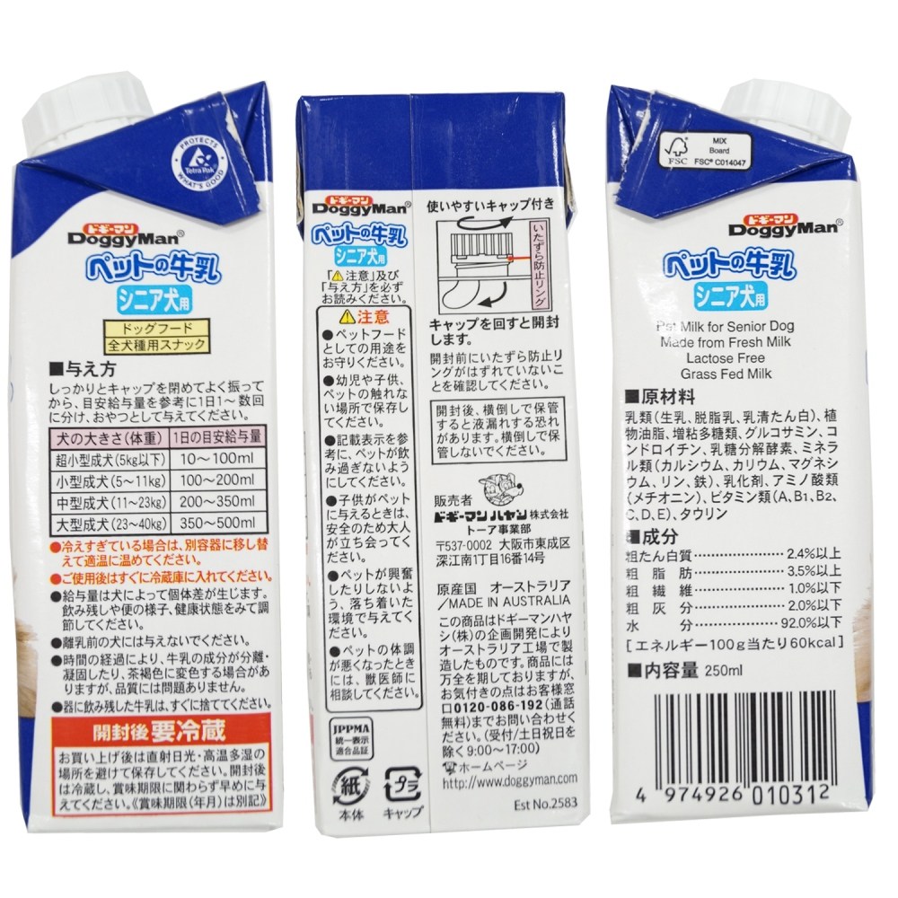 ・無乳糖でお腹にやさしいワンちゃん用の牛乳です。