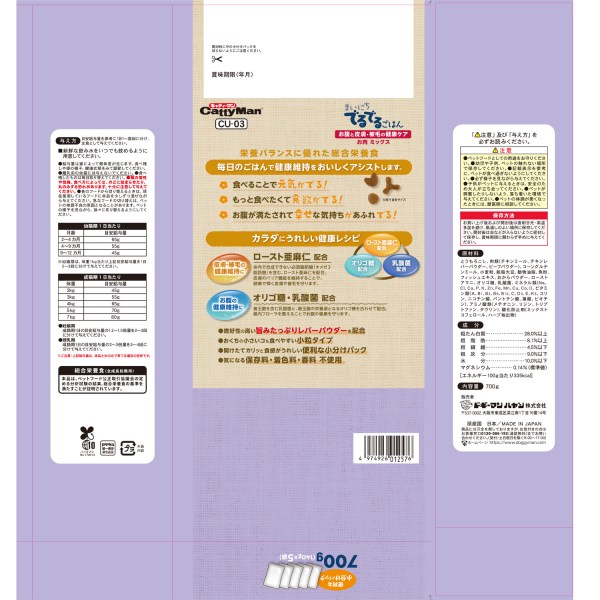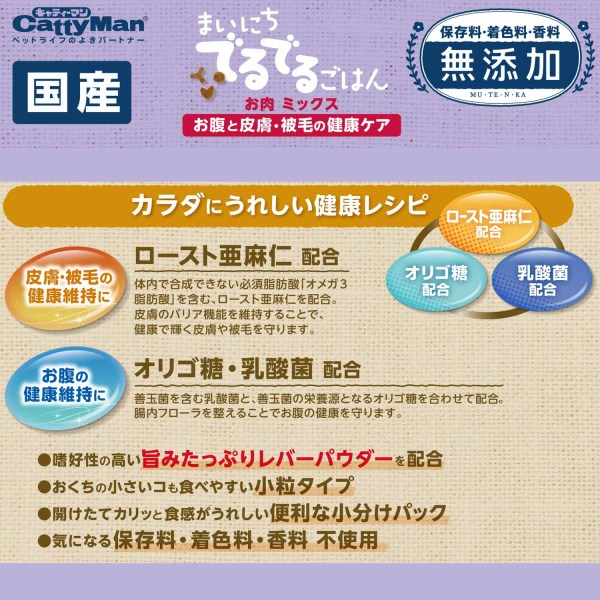 ・ローストアマニ、乳酸菌、オリゴ糖配合で、気になる皮膚被毛とお腹の健康維持に役立ちます。
