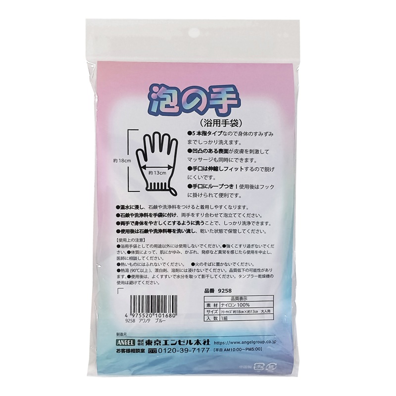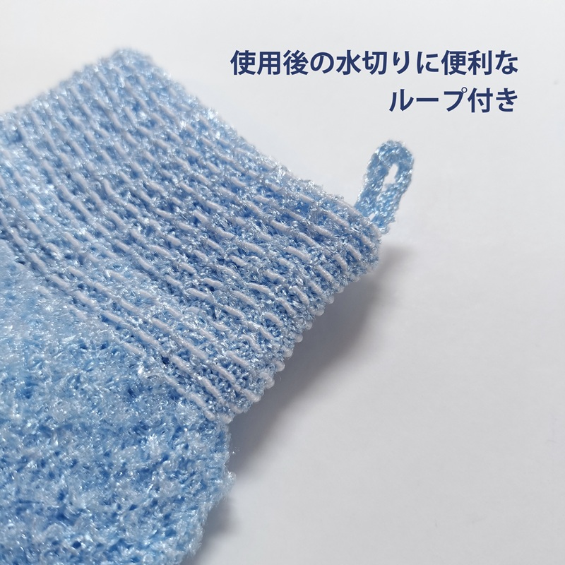 ・5本指タイプなので体のすみずみまでしっかり洗えます。