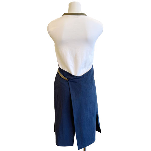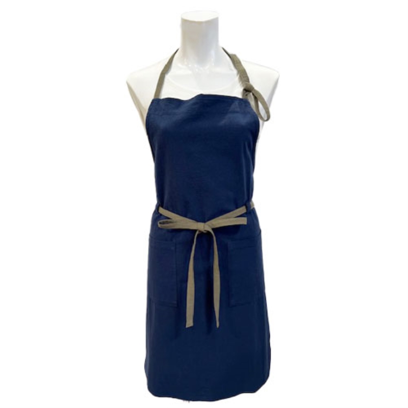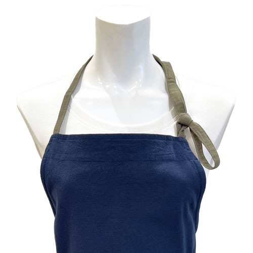 天然繊維を使用したナチュラルエプロンです。シワ感が特徴のワッシャー素材を使用しています。