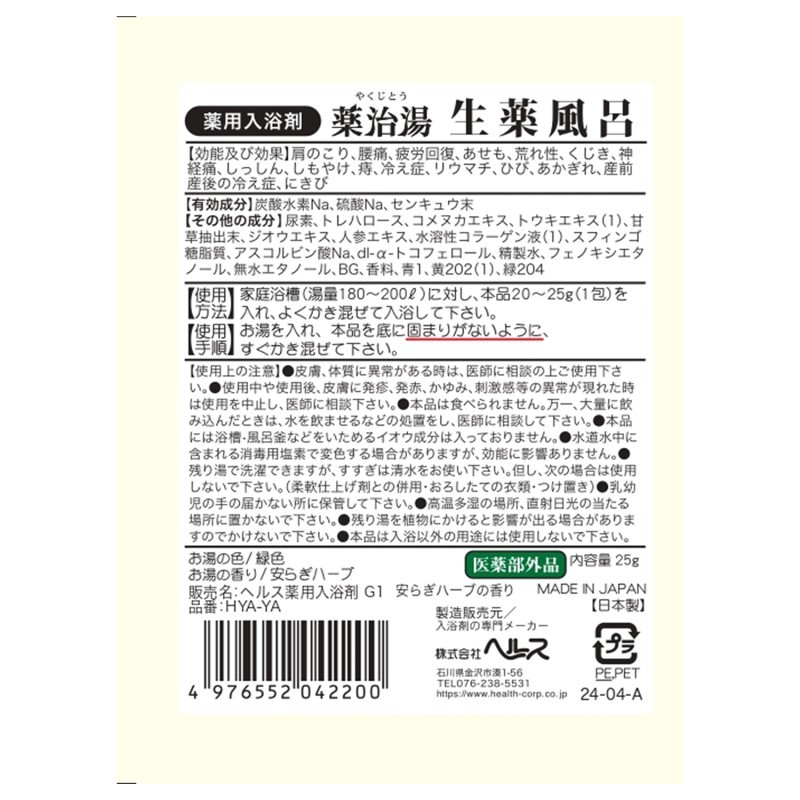 ●生薬の香りが浴室内に広がります。