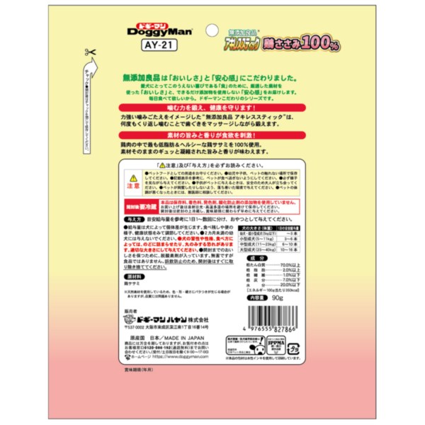・鶏肉の中で最も低脂肪でヘルシーな鶏ササミを100%使用しています。