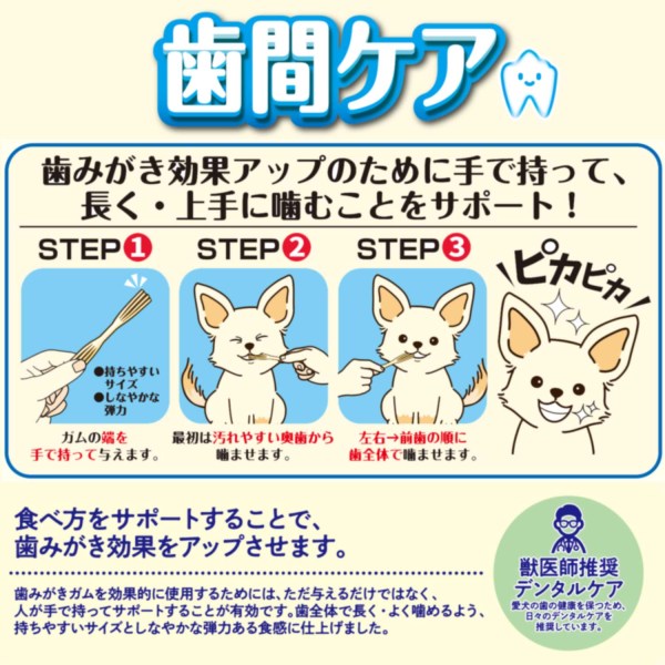 ・かむ力が弱い子もかみやすい犬用のデンタルケアおやつです。