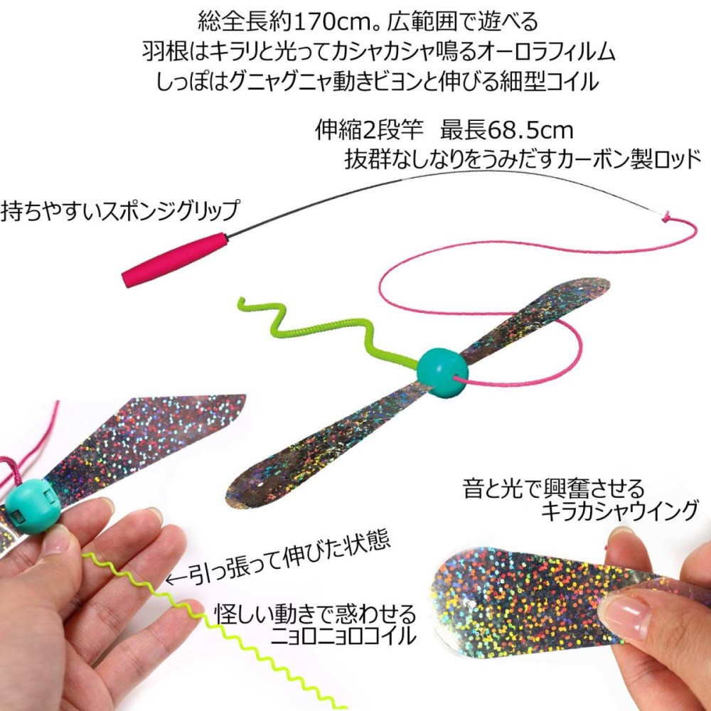 ・猫が好む3つのポイントを取り入れた、竿が伸びて扱いやすく、猫がよく遊ぶ猫じゃらしです。