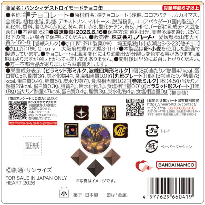 - ●原材料名:準チョコレート(砂糖、ココアバター、カカオマス、全粉乳、植物油脂、乳糖、